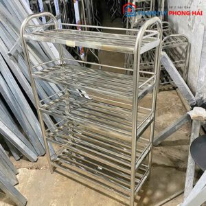 Mô tả: Kệ inox 5 tầng thiết kế rộng rãi, giúp tối ưu không gian lưu trữ giày dép hoặc vật dụng trong gia đình, cửa hàng, văn phòng. Chất liệu inox cao cấp chống gỉ sét, đảm bảo độ bền lâu dài. Các thanh ngang chắc chắn, thoáng khí, giúp giày dép không bị ẩm mốc. Kiểu dáng nhỏ gọn, dễ lắp đặt, phù hợp đặt ở nhiều vị trí khác nhau. Độ chịu lực tốt, bề mặt sáng bóng, dễ vệ sinh, giữ được vẻ ngoài như mới trong thời gian dài.