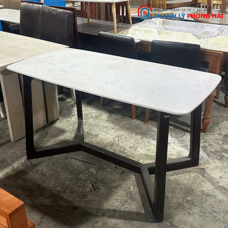 Bàn Ăn Mặt Đá Chân Sắt 1m4 Cũ – Hiện Đại, Tinh Tế