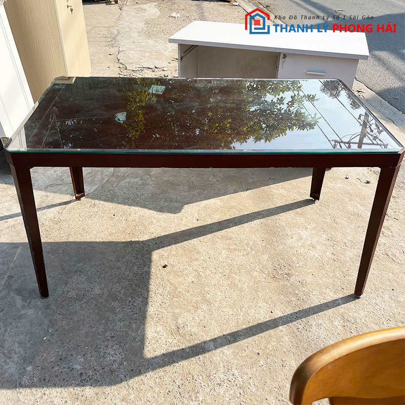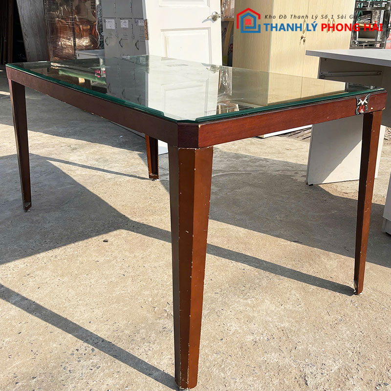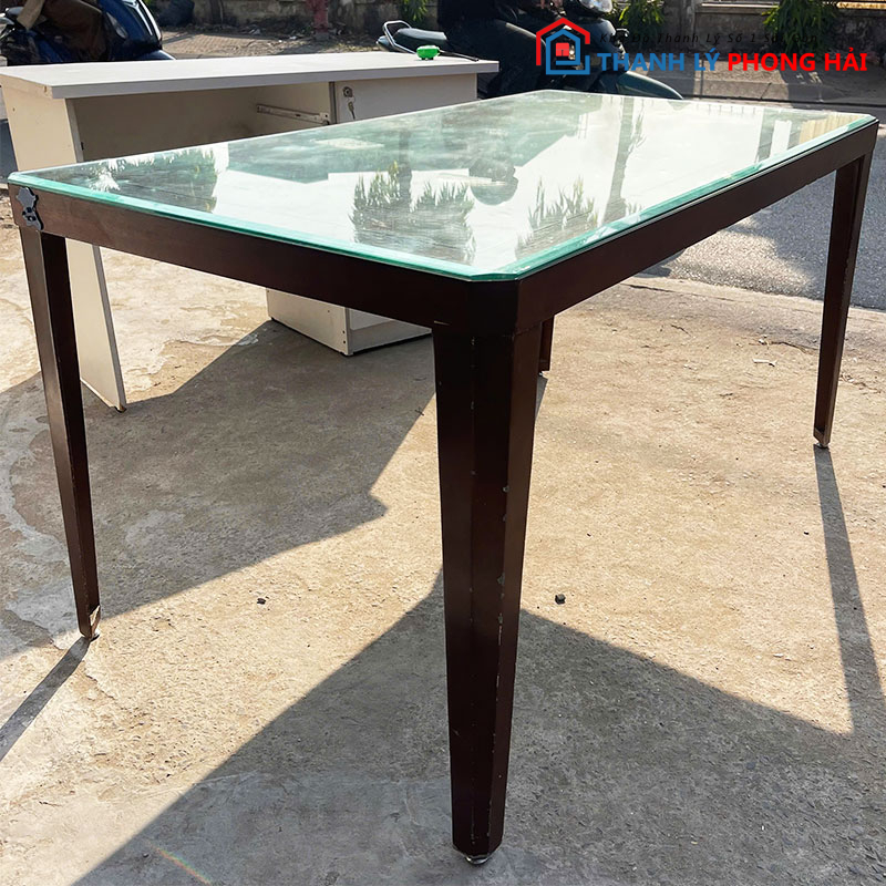 Bàn Ăn Mặt Gỗ Có Kính 1m45 Cũ