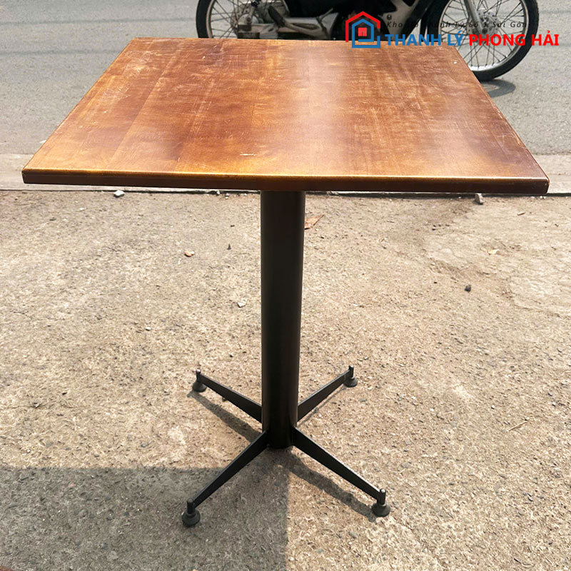 Bàn cafe mặt gỗ 60cm thiết kế đơn giản, dễ dùng cho quán cafe, trà sữa hoặc quán ăn nhỏ. Mặt bàn gỗ vuông, bề mặt phẳng, dễ lau chùi, phù hợp kê 2–4 ghế. Phần chân sắt sơn đen chắc chắn, đứng vững, chịu lực tốt, sử dụng ổn định lâu dài. Kiểu dáng gọn gàng, dễ sắp xếp theo từng cụm hoặc kê sát tường để tiết kiệm diện tích quán. Hàng đã qua sử dụng nhưng còn đẹp, kết cấu chắc.