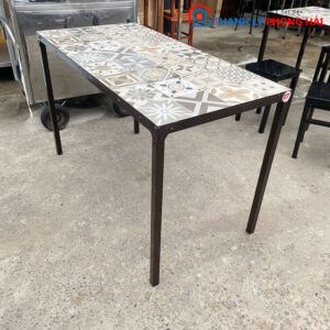 Mẫu bàn với thiết kế mặt đá chữ nhật hoa văn bắt mắt, kết hợp chân sắt sơn tĩnh điện tạo sự chắc chắn và bền bỉ. Phù hợp sử dụng cho quán cafe, trà sữa, quán ăn hoặc không gian gia đình.