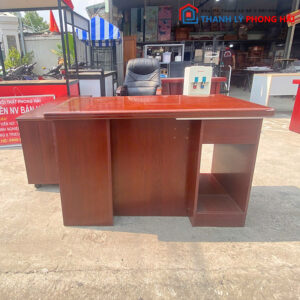 Mô tả: Bộ bàn giám đốc cũ gồm một bàn chính kích thước rộng rãi và tủ phụ đi kèm giúp tối ưu không gian lưu trữ. Bàn có mặt gỗ dày, bo viền tinh tế, tăng tính thẩm mỹ và độ bền. Tủ phụ thiết kế linh hoạt, có thể đặt sát bàn hoặc di chuyển tùy ý. Chân bàn chắc chắn, giúp tăng độ ổn định khi sử dụng. Phù hợp với phòng làm việc của lãnh đạo, tạo sự chuyên nghiệp và đẳng cấp.