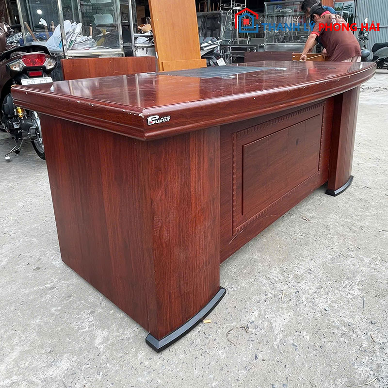 Mẫu bàn giám đốc gỗ có bửng này phù hợp cho anh chị cần bàn làm việc rộng, chắc chắn, giá tiết kiệm. Anh chị có thể ghé kho Phong Hải xem trực tiếp hoặc liên hệ Zalo để được gửi hình thực tế và giữ bàn nhanh. Xem thêm các mẫu khác tại mục “bàn giám đốc cũ“!