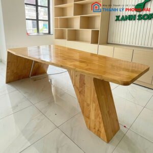 Bàn gỗcó thiết kế chắc chắn với mặt bàn dày, chịu lực tốt, phù hợp để làm bàn họp, bàn làm việc hoặc bàn ăn. Kiểu dáng đơn giản nhưng hiện đại, chân bàn được thiết kế vững vàng, tạo sự ổn định khi sử dụng. Mặt bàn rộng rãi, thoải mái cho nhiều mục đích khác nhau.
