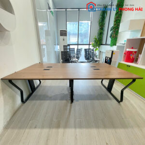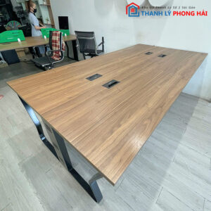 Mô tả: Bàn họp cũ thiết kế rộng rãi, phù hợp cho văn phòng, phòng họp nhóm hoặc không gian làm việc chung. Mặt bàn gỗ công nghiệp phủ melamine chống trầy, dễ lau chùi. Chân sắt sơn tĩnh điện chắc chắn, giúp bàn chịu lực tốt, không rung lắc. Trên mặt bàn có sẵn lỗ luồn dây điện tiện lợi.