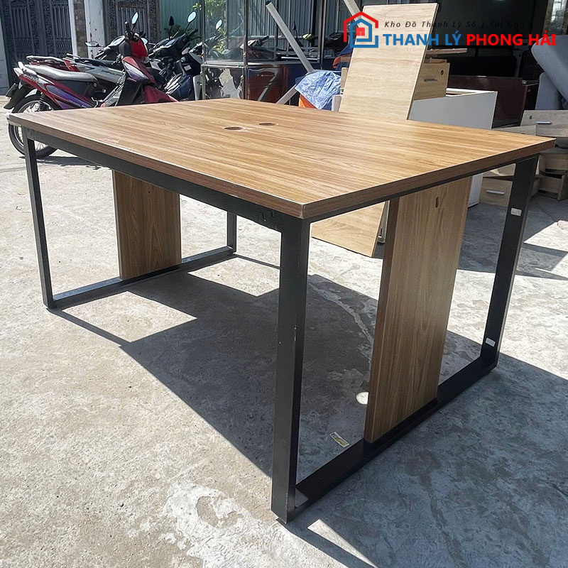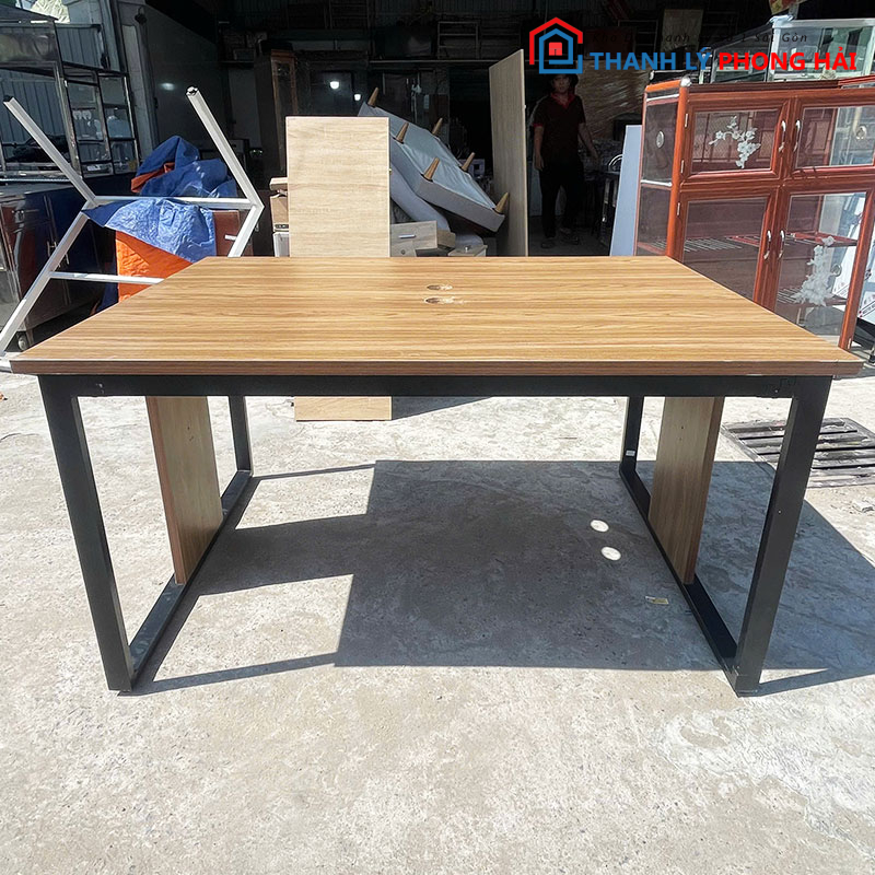 Mẫu bàn họp cũ thiết kế đơn giản, mặt gỗ vân sáng kết hợp chân sắt sơn đen, phù hợp sử dụng cho phòng họp công ty, văn phòng làm việc, phòng làm việc nhóm hoặc không gian đào tạo. Kiểu dáng vuông vức, dễ phối với nhiều loại ghế văn phòng khác nhau.