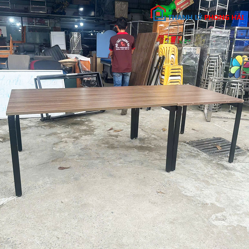 Kho Thanh Lý Phong Hải chuyên cung cấp bàn họp cũ, bàn văn phòng gỗ MDF các kích thước, đảm bảo chắc chắn và thẩm mỹ cao. Sản phẩm được kiểm tra kỹ trước khi trưng bày, mặt gỗ đẹp, không trầy xước, khung sắt cứng cáp – phù hợp cho nhiều mục đích sử dụng. Hàng thanh lý còn mới, giá rẻ chỉ bằng một nửa hàng mới trên thị trường. Quý khách có thể đến xem trực tiếp tại kho hoặc liên hệ Zalo để được tư vấn và đặt hàng nhanh nhất.
