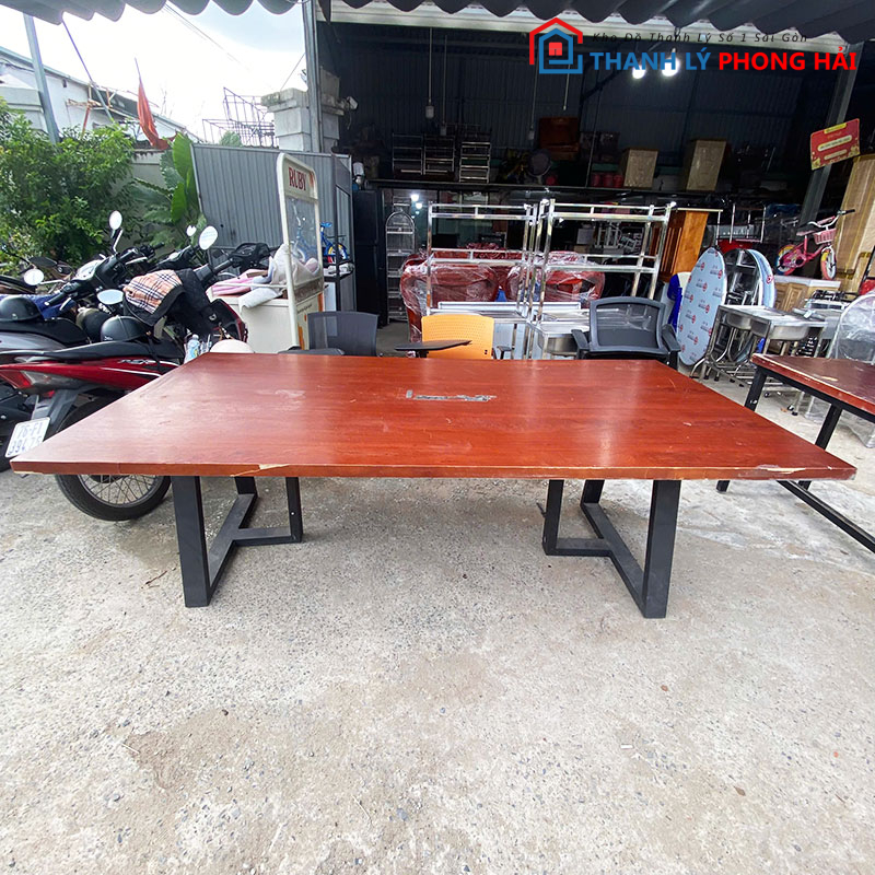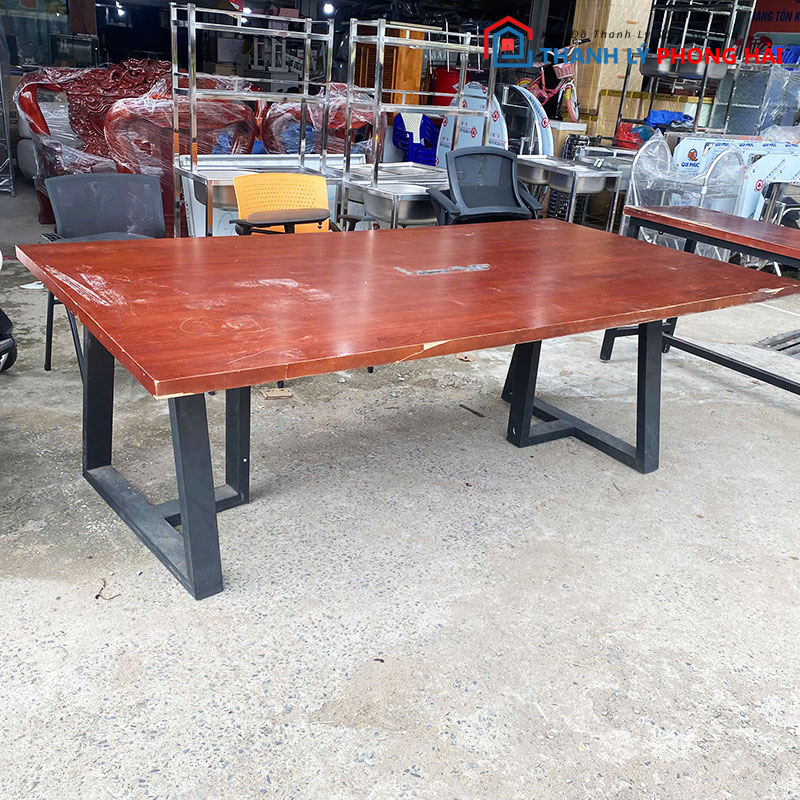 Bàn Họp Mặt Gỗ, Chân Sắt 2m2 Cũ – Cho Văn Phòng Hiện Đại