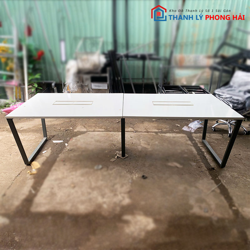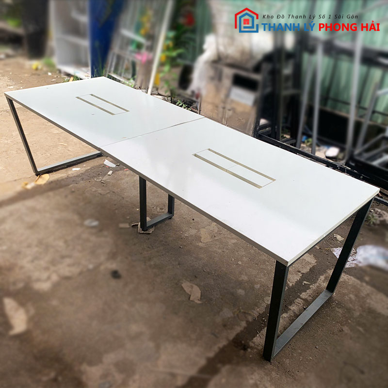Bàn Họp Mặt Trắng 2m6 Có Lỗ Đi Dây Cũ – Thanh Lý Giá Rẻ