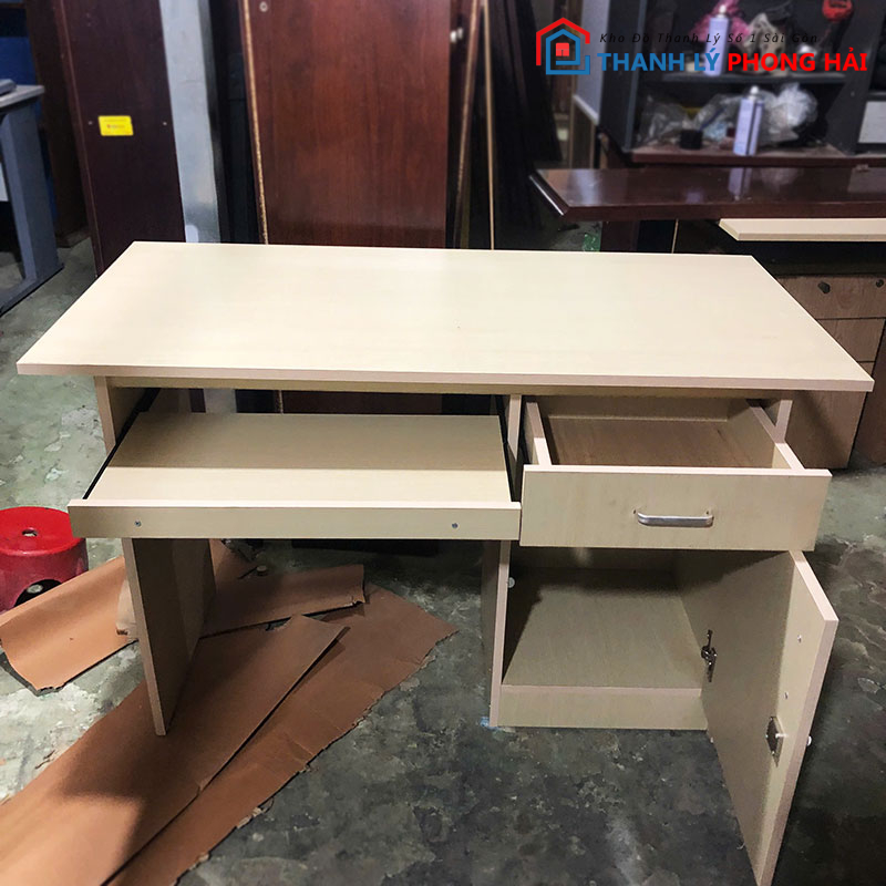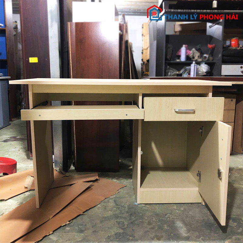 Bàn làm việc 1m2 thiết kế tiện dụng, tích hợp ngăn để bàn phím giúp không gian làm việc gọn gàng, khoa học. Đi kèm là tủ hồ sơ 2 ngăn, thuận tiện lưu trữ tài liệu, giấy tờ quan trọng. Sản phẩm thuộc hàng tồn kho, mới đến 99%, thích hợp cho văn phòng, gia đình hoặc không gian làm việc cá nhân. Chất liệu chắc chắn, bề mặt nhẵn mịn, dễ dàng vệ sinh và bảo quản.