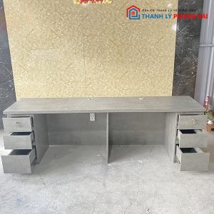 Bàn làm việc thanh lý với chiều dài 2m38 mang đến không gian làm việc thoải mái, phù hợp cho nhiều người cùng làm việc. Chất liệu gỗ công nghiệp phủ melamine giúp chống trầy xước, giúp sản phẩm vẫn có độ bền đẹp dù đã qua sử dụng. Với các hộc kéo tiện dụng hai bên, người dùng có thể lưu trữ tài liệu và vật dụng cá nhân một cách ngăn nắp. Đây là sản phẩm thanh lý với giá thành phải chăng, giúp tiết kiệm chi phí mà vẫn đảm bảo chất lượng. Phong Hải luôn cam kết hỗ trợ giao hàng và lắp đặt tận nơi cho khách hàng.