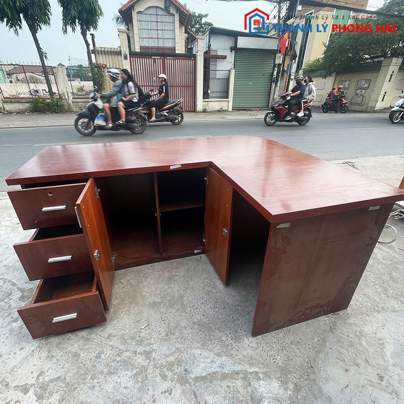 Bàn Quầy Chữ L 1m75 Cũ MDF Phủ Veneer Cũ – Sang Trọng, Chuyên Nghiệp