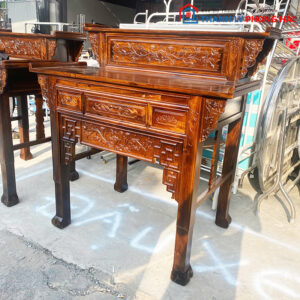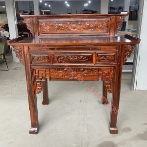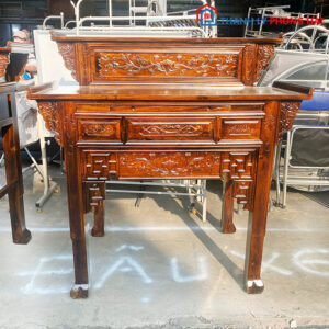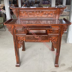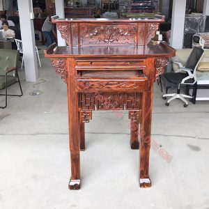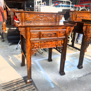 Mô tả: Tủ kệ thờ gồm 2 tầng, có 1 hộc, được làm từ chất liệu gỗ muồng với đường nét hoa văn điêu khắc đẹp mắt. Màu nâu gỗ mang đến cho không gian thờ kính sự ấm cúng, thiêng liêng.