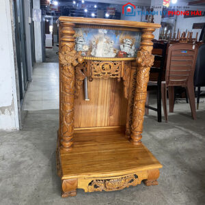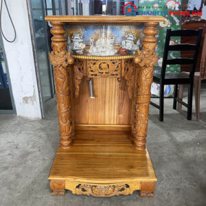 Mô tả: Bàn thờ Ông Địa nhỏ gọn, được chạm khắc rồng phượng tinh xảo, có đèn LED trang trí đẹp mắt. Thiết kế chắc chắn, phù hợp để thờ cúng trong nhà, mang lại cảm giác tôn nghiêm. Bàn thờ có ngăn trên rộng, tiện lợi cho việc sắp xếp đồ lễ.