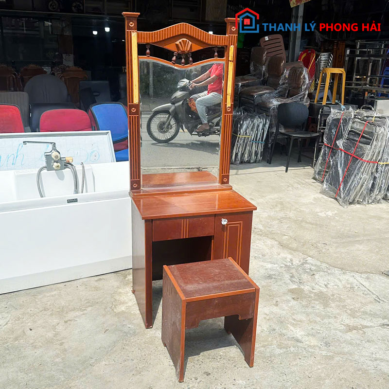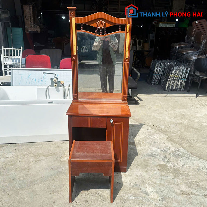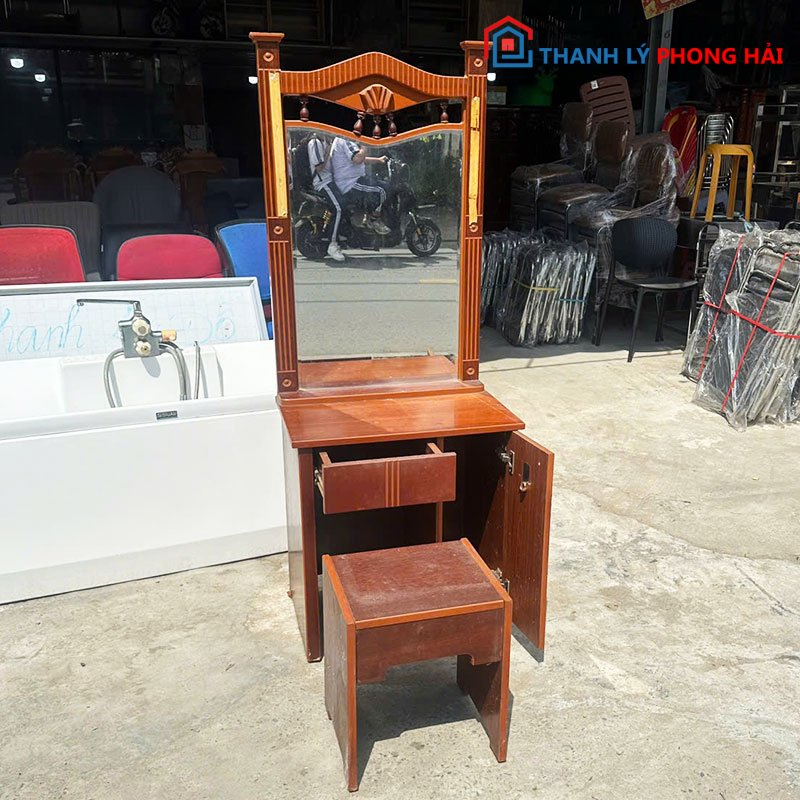 Bàn trang điểm 60cm đang có sẵn tại Thanh Lý Phong Hải, hình thật như ảnh. Mời anh chị ghé kho xem trực tiếp hoặc nhắn Zalo để giữ hàng. Kho còn nhiều mẫu bàn trang điểm gỗ cũ, bàn làm việc mini và tủ trang trí giá rẻ mỗi ngày – mời anh chị tham khảo thêm!