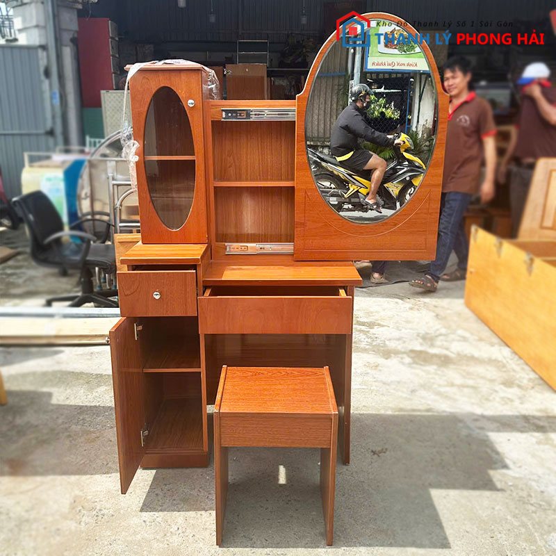 Thanh Lý Phong Hải hiện đang có sẵn mẫu bàn trang điểm tủ gương cửa trượt với giá cực rẻ, là lựa chọn tuyệt vời cho chị em muốn setup góc làm đẹp gọn gàng, tinh tế. Sản phẩm bền đẹp, gương sáng rõ, ngăn kéo trượt nhẹ, sẵn dùng ngay. Khách có thể đến xem trực tiếp tại kho hoặc liên hệ Zalo, điện thoại để được giữ hàng nhanh nhất. Ngoài ra, kho còn nhiều mẫu bàn trang điểm cũ, bàn làm việc, tủ quần áo và giường gỗ thanh lý – giá rẻ, giao tận nơi toàn TP.HCM.