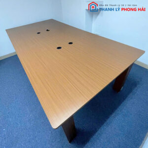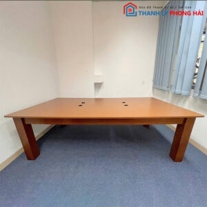 Mô tả: Bàn dài 2m4 rộng rãi, thiết kế đơn giản, hiện đại với 2 lỗ đi dây tiện dụng cho thiết bị điện tử. Phù hợp cho các phòng họp nhỏ hoặc khu vực làm việc nhóm. Mặt bàn gỗ MDF dày, chống trầy nhẹ, màu nâu vân gỗ dễ phối nội thất. Chân bàn dạng hộp vuông giúp giữ chắc và tăng độ ổn định khi sử dụng lâu dài.