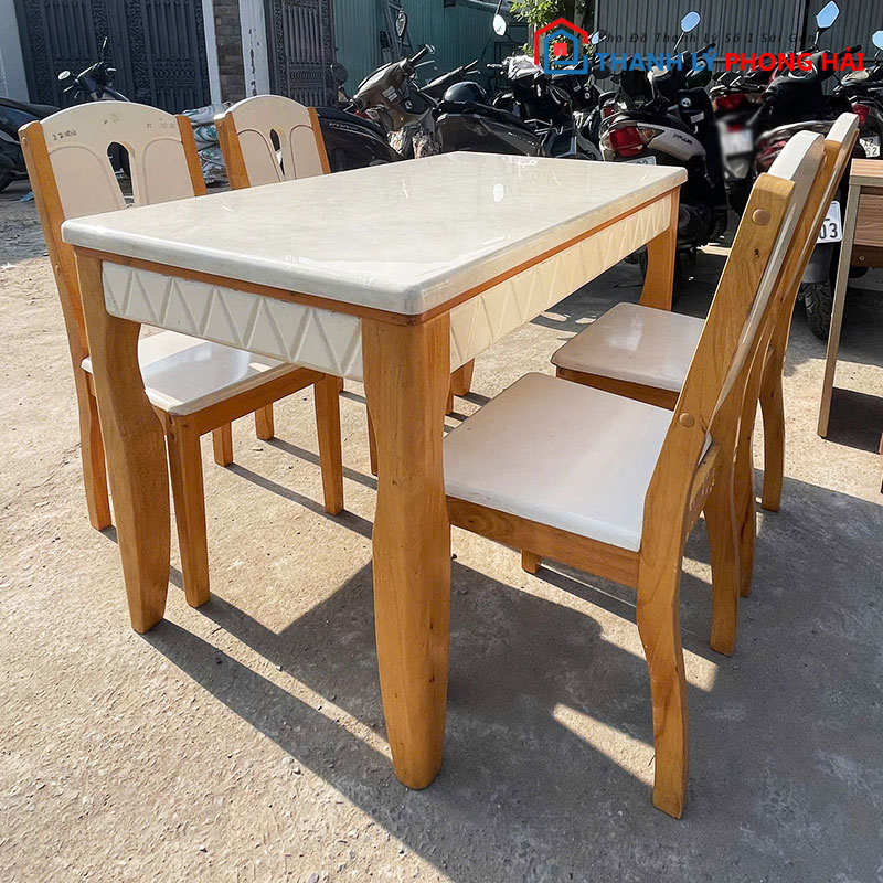 Bộ Bàn Ăn 1m2 Kèm 4 Ghế Mặt Đá Cũ – Màu Trắng Hiện Đại