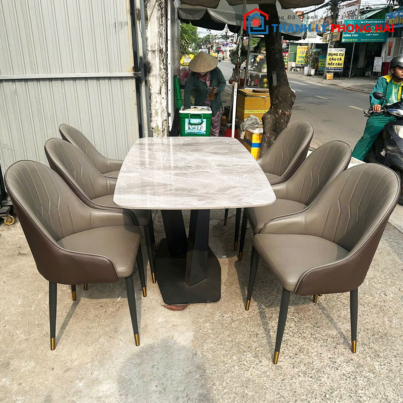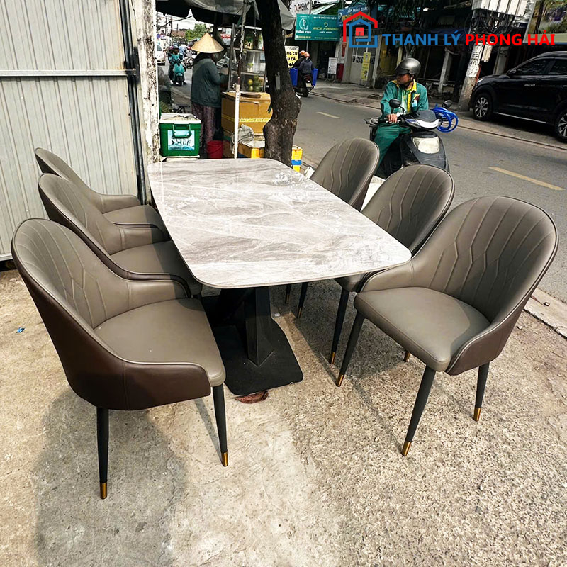 Bộ Bàn Ăn 1m4 Kèm 6 Ghế Bọc Da Cũ