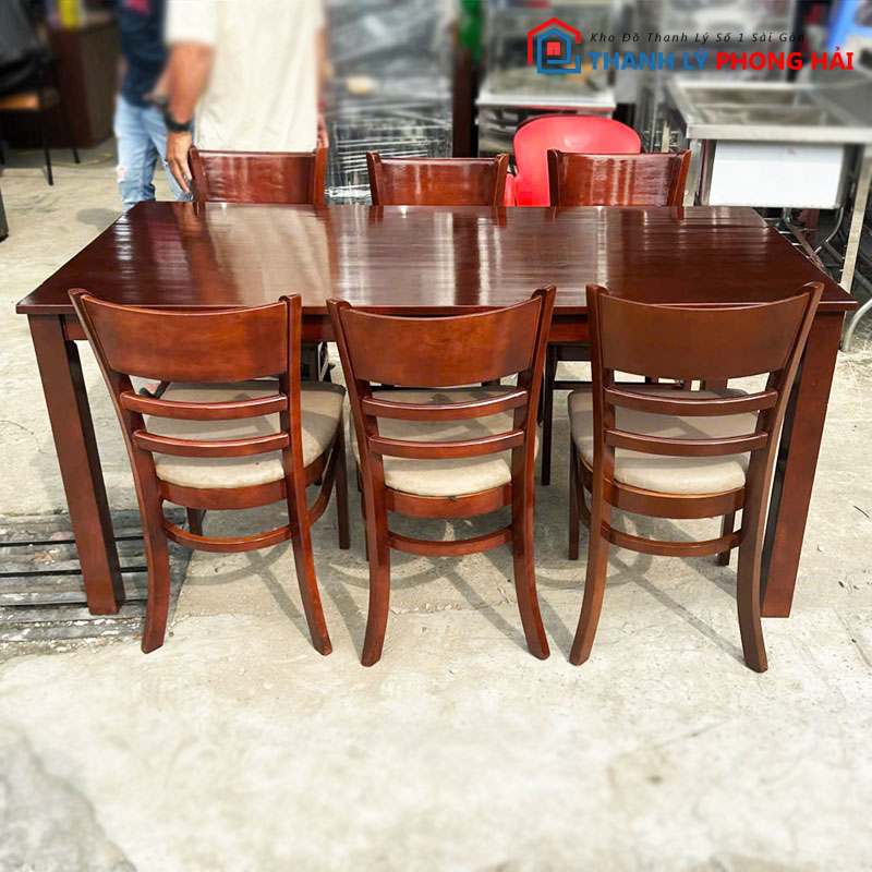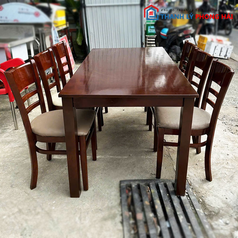 Bộ Bàn Ăn 1m6 Gỗ Màu Cánh Gián Kèm 6 Ghế Cũ