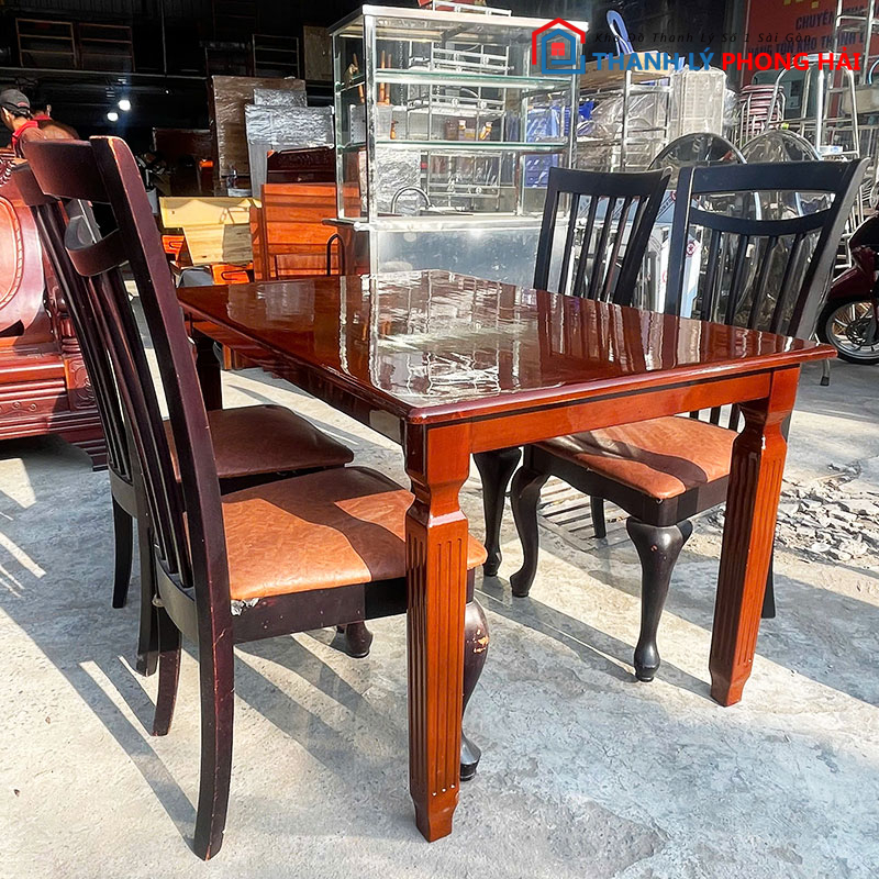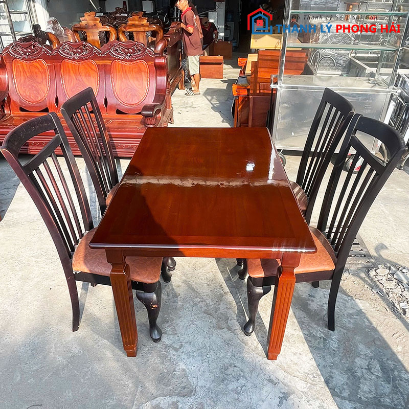 Bộ Bàn Ăn 4 Ghế Gỗ Bọc Đệm 1m35 Cũ – Sang Trọng Cho Gia Đình