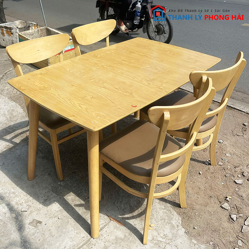 Bộ Bàn Ăn Mango 4 Ghế 1m2 Cũ – Gỗ Sáng Màu, Gọn Gàng