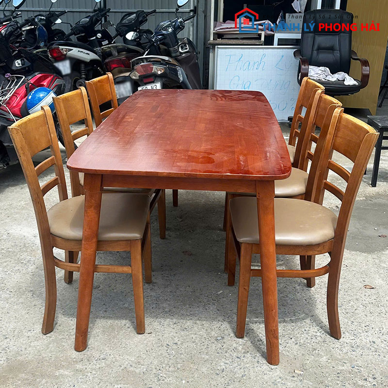 bo-ban-an-mat-go-1m6-kem-6-ghe-cabin-cu-1 Bộ Bàn Ăn Mặt Gỗ 1m6 Kèm 6 Ghế Cabin Cũ