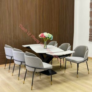 Mô tả: mặt bàn được thiết kế độc lạ với chiều dài 1,2m dễ dàng mở rộng và kéo dài lên tới 1,8m. Khung và chân sắt sơn tĩnh điện cao cấp, không hoen gỉ, chân ghế được mạ vàng sang trọng. Sử dụng bàn ăn kéo dài thông có thể kéo gọn vào khi không sử dụng, giúp không gian bếp nhà bạn trông gọn gàng, tiện nghi và rộng rãi hơn.