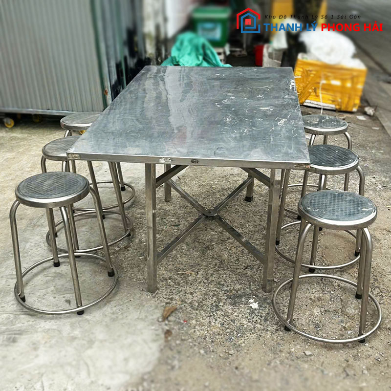 Kho Thanh Lý Phong Hải hiện có sẵn nhiều bộ bàn ghế inox cũ số lượng lớn, hàng bền đẹp – phù hợp cho quán ăn, quán nhậu, quán cơm hoặc hộ kinh doanh nhỏ. Bàn inox chắc chắn, ghế tròn gọn gàng, dễ di chuyển và lau chùi. Tất cả sản phẩm đều được kiểm tra kỹ, đảm bảo sử dụng ổn định lâu dài. Giá thanh lý siêu rẻ, tiết kiệm hơn 50% so với hàng mới. Mời khách đến xem trực tiếp tại kho hoặc liên hệ Zalo để giữ hàng sớm nhất.