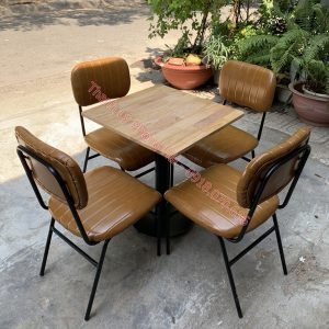 - Chất liệu: Khung sắt sơn tĩnh điện, mặt bàn MDF, đệm da simili