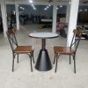 Chất liệu: Ghế có mặt gỗ tự nhiên chân sắt cao cấp, bàn tròn chân chuông sắt sơn tĩnh điện.
