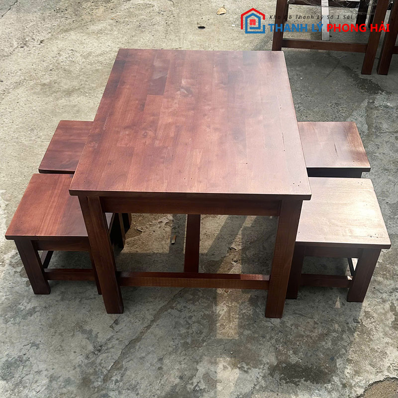 Bộ Bàn Ghế Gỗ 80cm Màu Cánh Gián Mới 99% – Phù Hợp Cho Quán Nhậu, Quán Cóc