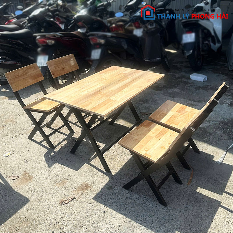 bo-ban-ghe-quan-an-1m-go-tu-nhien-3 Bộ Bàn Ghế Quán Ăn 1m Gỗ Tự Nhiên, Chân Sắt Mới 99%