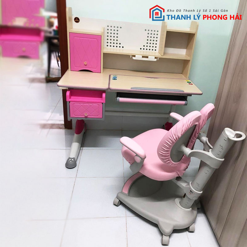 Bộ bàn học thông minh màu hồng với ghế điều chỉnh độ cao là lựa chọn lý tưởng cho phòng học của bé. Ghé Thanh Lý Phong Hải để xem thêm các mẫu bàn học, ghế học sinh thanh lý và nhiều sản phẩm nội thất khác. Liên hệ Zalo hoặc đến kho trực tiếp để chọn sản phẩm phù hợp.