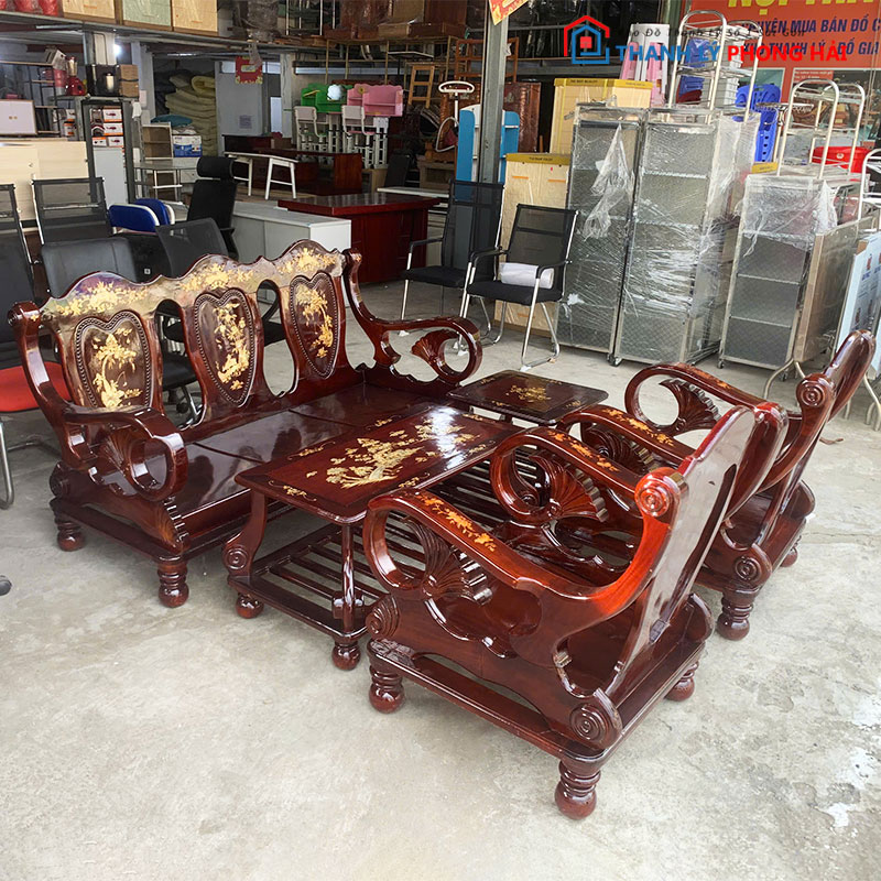 Bộ Salon Gỗ Tay 8 Khảm Xà Cừ Cũ – Thanh Lý Giá Siêu Rẻ