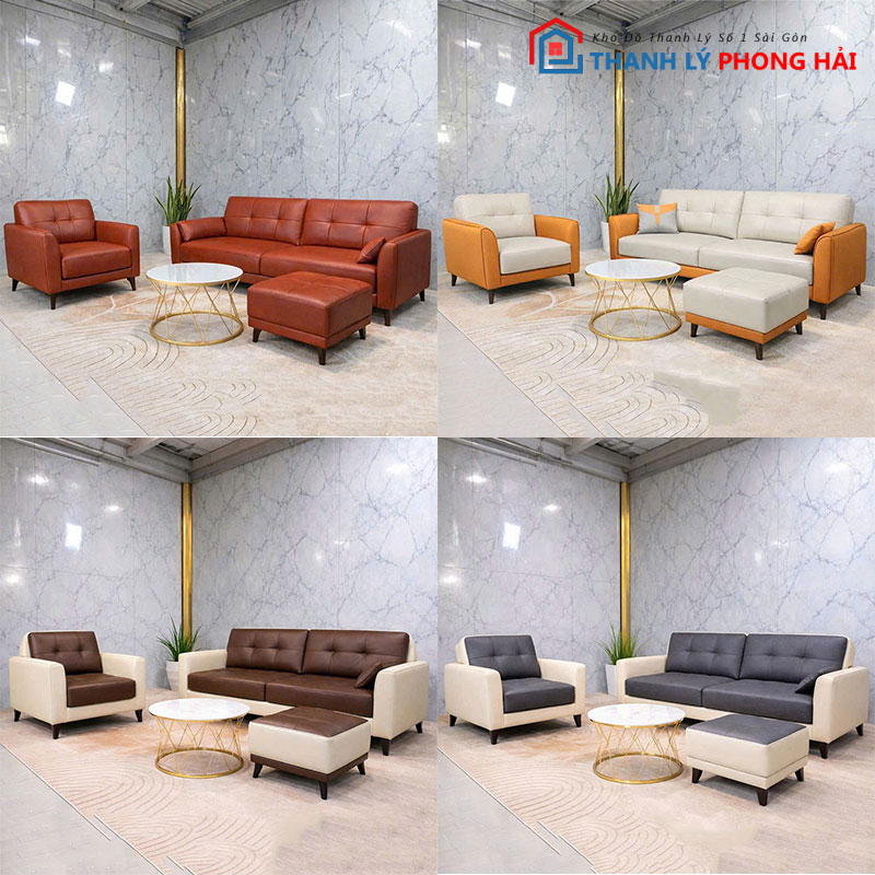 Thanh Lý Phong Hải hiện có sẵn nhiều mẫu sofa bọc da thanh lý từ bộ nhỏ gọn đến bộ lớn cho phòng khách rộng. Hàng được kiểm tra kỹ trước khi bán, đảm bảo chắc chắn, sử dụng bền và tiết kiệm chi phí đáng kể so với mua mới. Anh chị có thể ghé kho xem trực tiếp hoặc liên hệ để được tư vấn và chọn mẫu phù hợp nhu cầu.