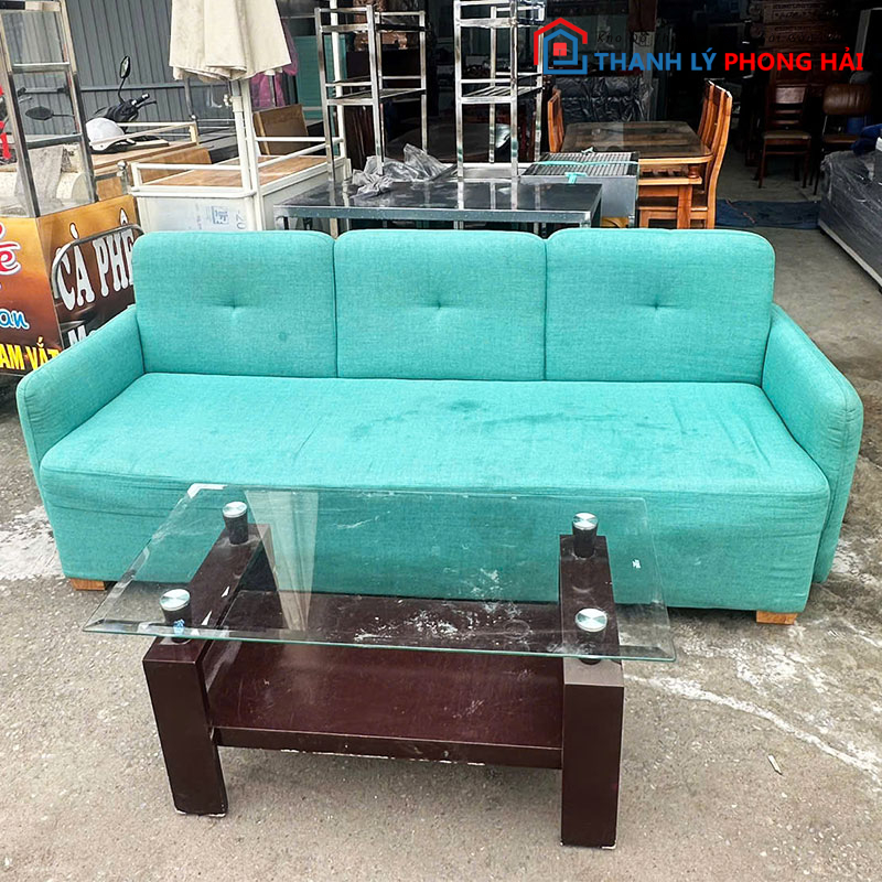 Bộ Sofa Bọc Vải 2m1 Kèm Bàn Kính Cũ