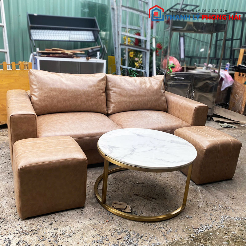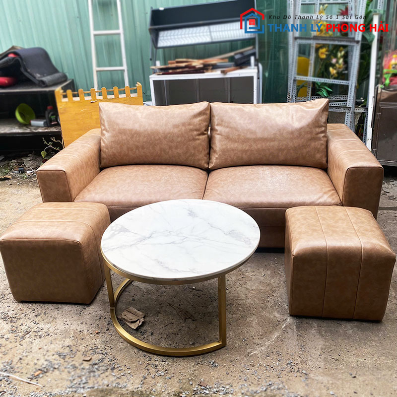 Bộ sofa màu da bò kèm bàn trà vân đá trắng là lựa chọn lý tưởng để làm nổi bật không gian phòng khách của bạn. Hãy ghé thăm Thanh Lý Phong Hải để khám phá thêm nhiều mẫu sofa cũ, bàn trà và các sản phẩm nội thất sang trọng khác.