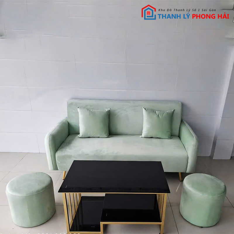 Bộ sofa nhung màu xanh ngọc kèm bàn trà mặt kính đen là lựa chọn lý tưởng để nâng tầm thẩm mỹ phòng khách. Ghé Thanh Lý Phong Hải để tham khảo thêm các mẫu sofa thanh lý, bàn trà và nhiều sản phẩm nội thất khác. Liên hệ Zalo hoặc đến kho trực tiếp để chọn sản phẩm phù hợp nhất.
