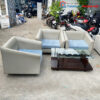 Chất liệu: Da công nghiệp, khung gỗ, bàn kính giả đá, chân kim loại sơn tĩnh điện.
