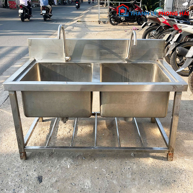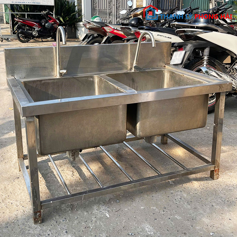Bồn Rửa Chén Inox 2 Ngăn 1m21 Cũ – Dùng Lâu Bền