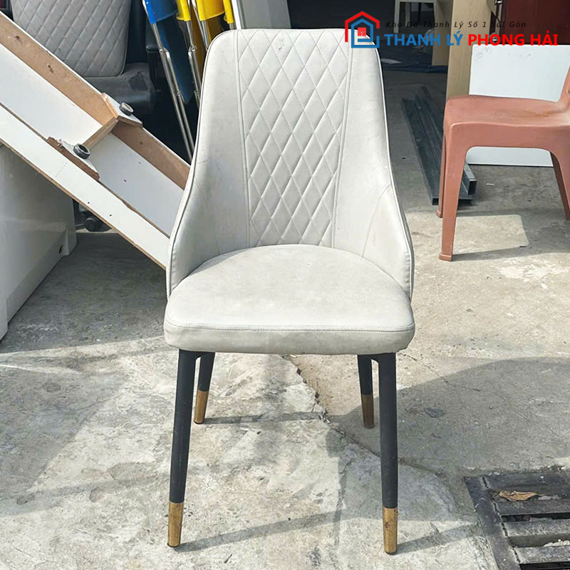 Ghế ăn bọc da màu xám cũ với thiết kế hiện đại, giúp không gian bếp hoặc phòng ăn của bạn thêm phần sang trọng. Mặt ghế được bọc da êm ái, dễ dàng vệ sinh và bảo quản. Chân ghế kim loại chắc chắn, với phần đầu chân được mạ vàng, tạo điểm nhấn tinh tế cho sản phẩm. Dù đã qua sử dụng, ghế vẫn giữ được độ bền và tính thẩm mỹ cao, thích hợp cho gia đình hoặc các không gian ăn uống chuyên nghiệp.