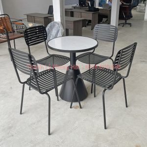Chất liệu: Mẫu bàn cafe có chân bằng sắt sơn tĩnh điện, mặt đá nhân tạo.