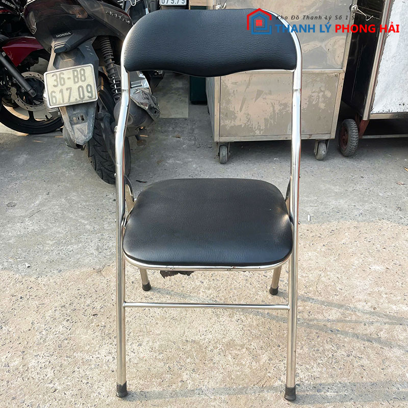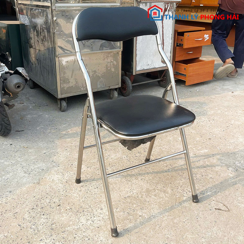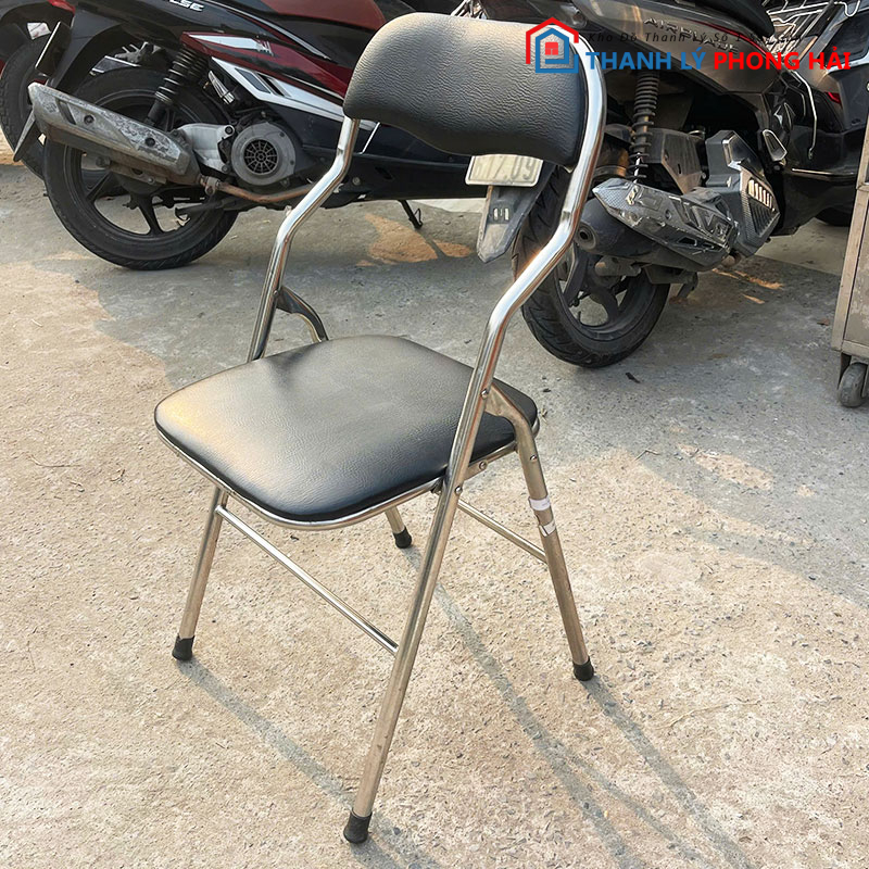 Ghế Bọc Da Đen Chân Inox Cũ – Gọn Nhẹ, Dễ Sắp Xếp