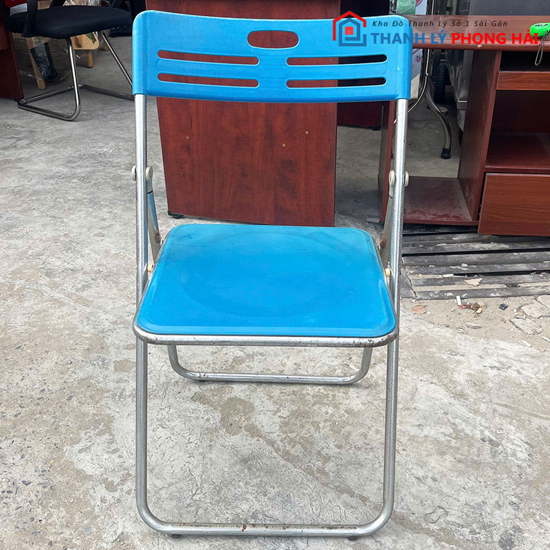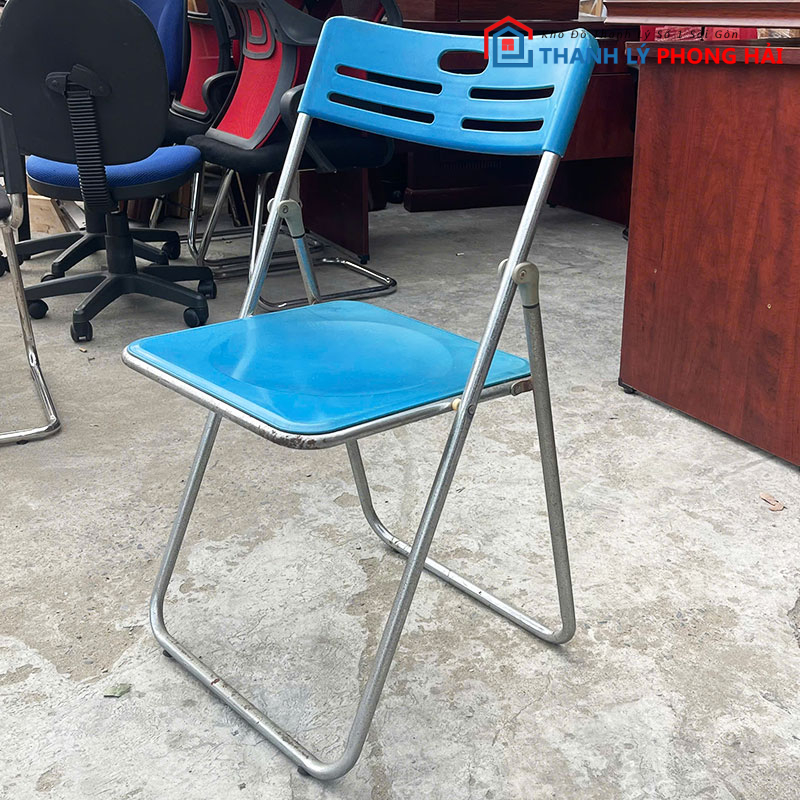 Mẫu ghế chân sắt thiết kế đơn giản, kiểu dáng gấp gọn, phù hợp sử dụng cho văn phòng, phòng họp, lớp học, quán ăn hoặc ngồi chờ. Phần mặt ghế và lưng tựa màu xanh tạo điểm nhấn trẻ trung, dễ phối với nhiều không gian khác nhau. Kết cấu ghế nhẹ, dễ di chuyển và sắp xếp khi cần.