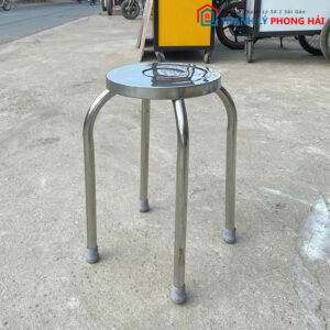Mô tả: Ghế inox tròn nhỏ gọn, dễ di chuyển, phù hợp sử dụng trong nhiều không gian như quán ăn, nhà bếp, trường học. Mặt ghế tròn sáng bóng, chắc chắn, chịu lực tốt. Chân ghế cong nhẹ, tạo sự vững chãi, có đế cao su giúp chống trơn trượt, bảo vệ sàn nhà. Chất liệu inox bền bỉ, chống gỉ sét, dễ vệ sinh, sử dụng lâu dài mà không lo hỏng hóc. Kiểu dáng đơn giản, tiện lợi, dễ xếp gọn khi không dùng đến.