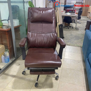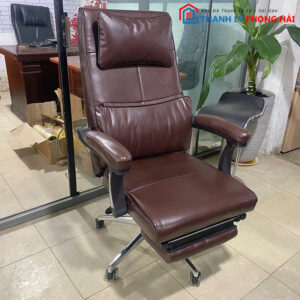 Mô tả: Ghế văn phòng cao cấp bọc da, thiết kế sang trọng, phù hợp cho giám đốc, trưởng phòng hoặc người làm việc nhiều giờ. Đệm ghế dày, êm ái, tựa lưng cao hỗ trợ tốt cho cột sống. Tay vịn cố định chắc chắn, giúp đặt tay thoải mái khi làm việc. Chân xoay linh hoạt, có bánh xe di chuyển nhẹ nhàng. Đặc biệt, ghế có tính năng ngả lưng và để chân, giúp thư giãn khi cần.