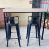 Mô tả: Bộ bàn ghế cafe cũ  gồm một bàn tròn và một ghế ngồi (có bán lẻ từng món). Bàn có thiết kế đơn giản, mặt bàn tròn màu đen kết hợp với chân bàn chắc chắn. Ghế ngồi được làm từ gỗ tự nhiên, thiết kế với lưng tựa cong nhẹ, tạo cảm giác thoải mái khi ngồi. Bộ bàn ghế này phù hợp cho không gian quán cafe hoặc góc uống trà nhỏ trong gia đình.