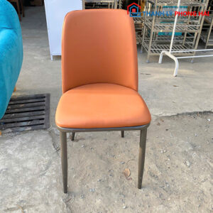 Ghế nệm cao cấp với thiết kế tựa lưng cong mềm mại, bọc da màu cam sang trọng, mang lại cảm giác thoải mái khi sử dụng. Phù hợp với nhiều không gian như phòng ăn, quán cà phê hay văn phòng hiện đại.