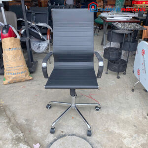 Mô tả: Ghế xoay văn phòng cao cấp với thiết kế thanh mảnh, hiện đại, phù hợp cho văn phòng, phòng họp hoặc không gian làm việc tại nhà. Tựa lưng cao bọc da, giúp nâng đỡ lưng và cổ khi ngồi lâu. Đệm ngồi phẳng nhưng chắc chắn, không bị xẹp lún theo thời gian. Tay vịn bằng kim loại bọc da tạo cảm giác êm ái. Chân ghế inox sáng bóng, bánh xe di chuyển linh hoạt giúp dễ dàng sử dụng.
